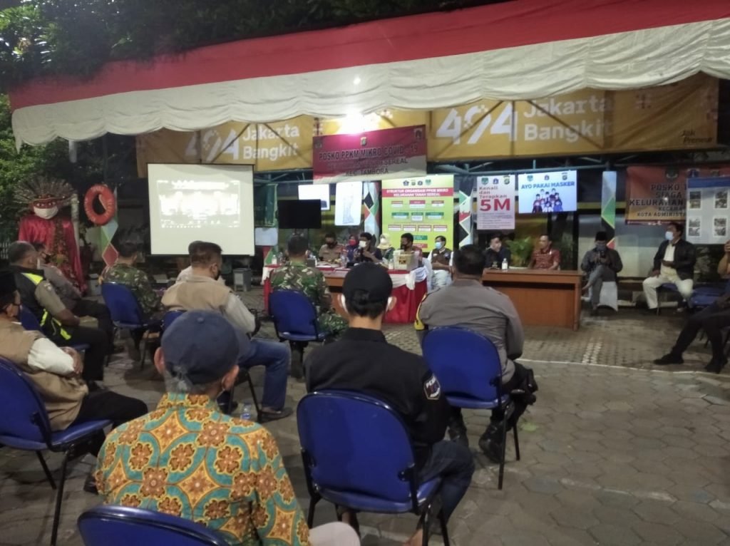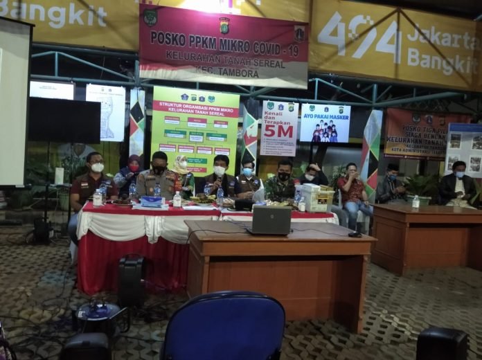 ACTUALNEWS.ID, Jakarta – Camat Tambora Bambang Sutarna bersama Danramil 02/TB Kapten Inf Arja Suarja dan Kapolsek Tambora Kompol M.Faruk Rozi hadiri Zoom meeting bersama walikota jakarta barat Uus Kuswanto, Dandim 0503/JB Kolonel Inf Dadang Marzuki Ismail dan Kapolres Jakarta Barat Kombes. Pol Ady Wibowo dalam rangka kegiatan menindak lanjuti arahan Gubernur, Pangdam Jaya dan Kapolda Metro Jaya.