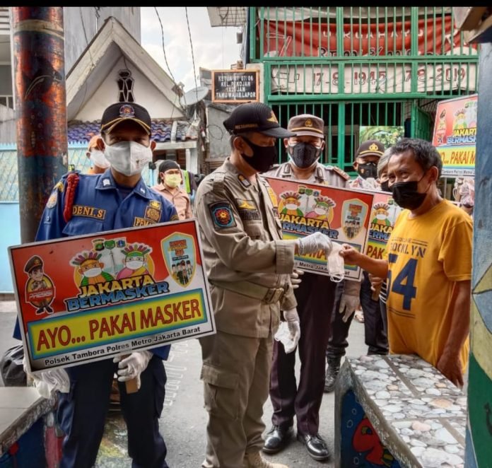 Hari ini, Senin 30 agustus 2021 Koramil 02/TB dipimpin oleh Serda Tri.N bersama Polsek Tambora 5 Personil dipimpin Iptu Suparsono, Pol PP 3 personil, Damkar 2 personil dan Dishub 2 personil melaksanakan sosialisasi PPKM dan pembagian masker di jalan Gedung Panjang RT 08/10, Kelurahan Pekojan Kecamatan Tambora Jakarta Barat.
