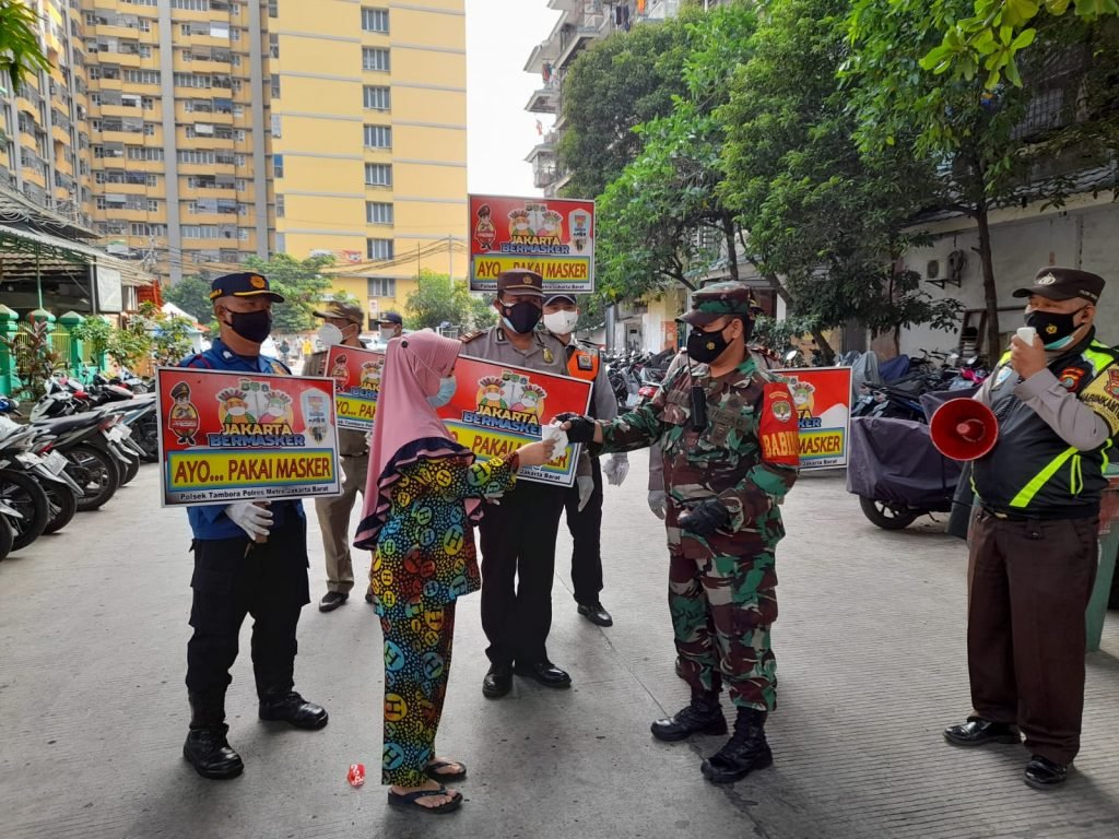 ACTUALNEWS.ID, Jakarta – Babinsa Koramil 02/TB Kodim 0503/JB intens melaksanakan kegiatan sosialisasi PPKM dan pembagian masker kepada masyarakat di wilayah kecamatan tambora dalam rangka pencegahan penyebaran covid-19.
