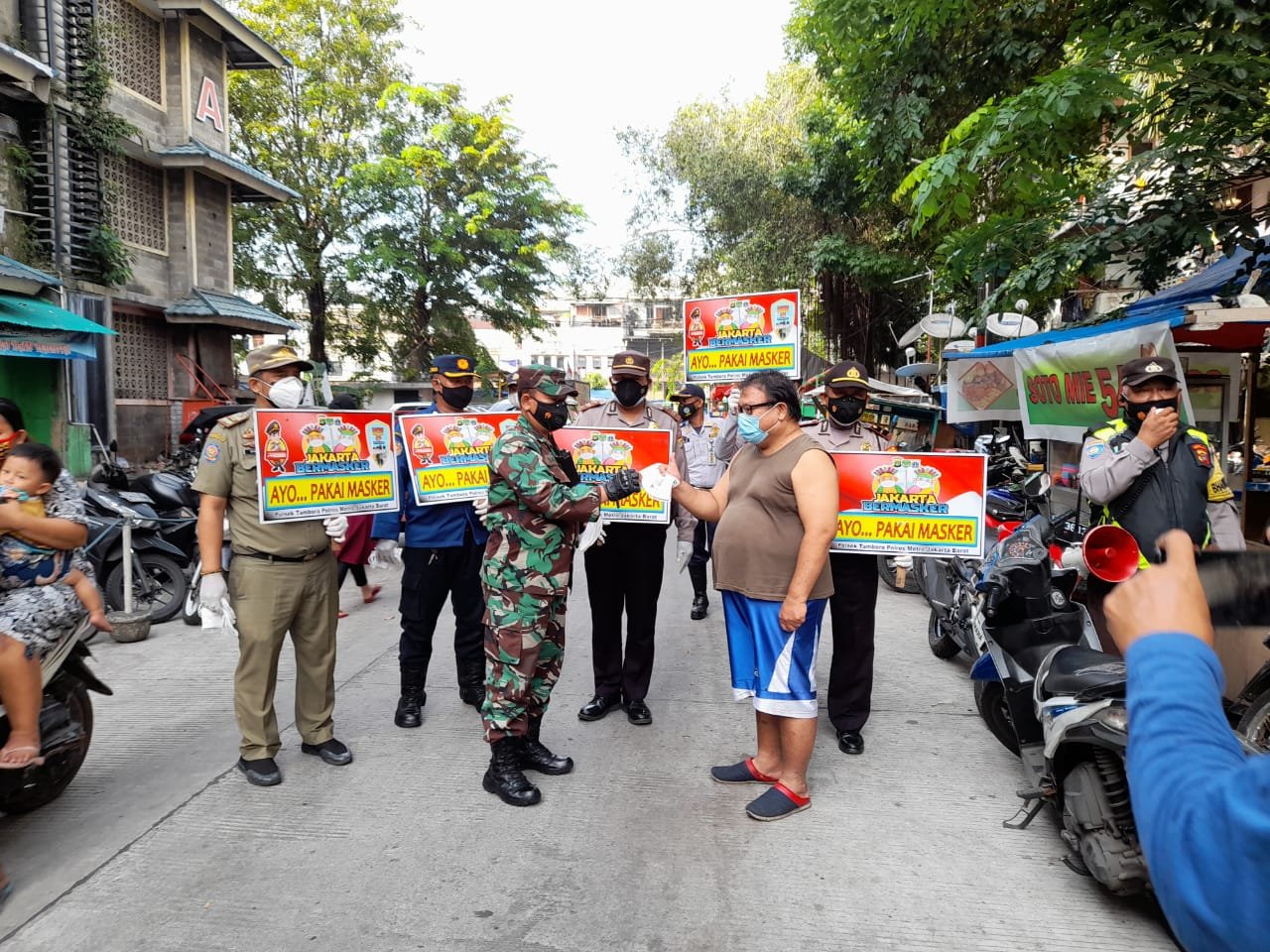 15 personil gabungan dari Koramil 02/TB Serda Sarip, Polsek Tambora Ipda Poegue Pol PP, Damkar dan Dishub menyasar jalan Angke indah, Rt 08/11, Kelurahan Angke Kecamatan Tambora Jakarta Barat guna mensosialisasikan kepada warga masyarakat tentang arti pentingnya penerapan pembatasan kegiatan masyarakat (PPKM) kepada masyarakat serta membagikan 200/masker.