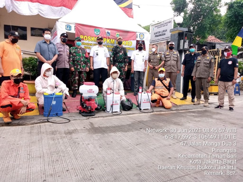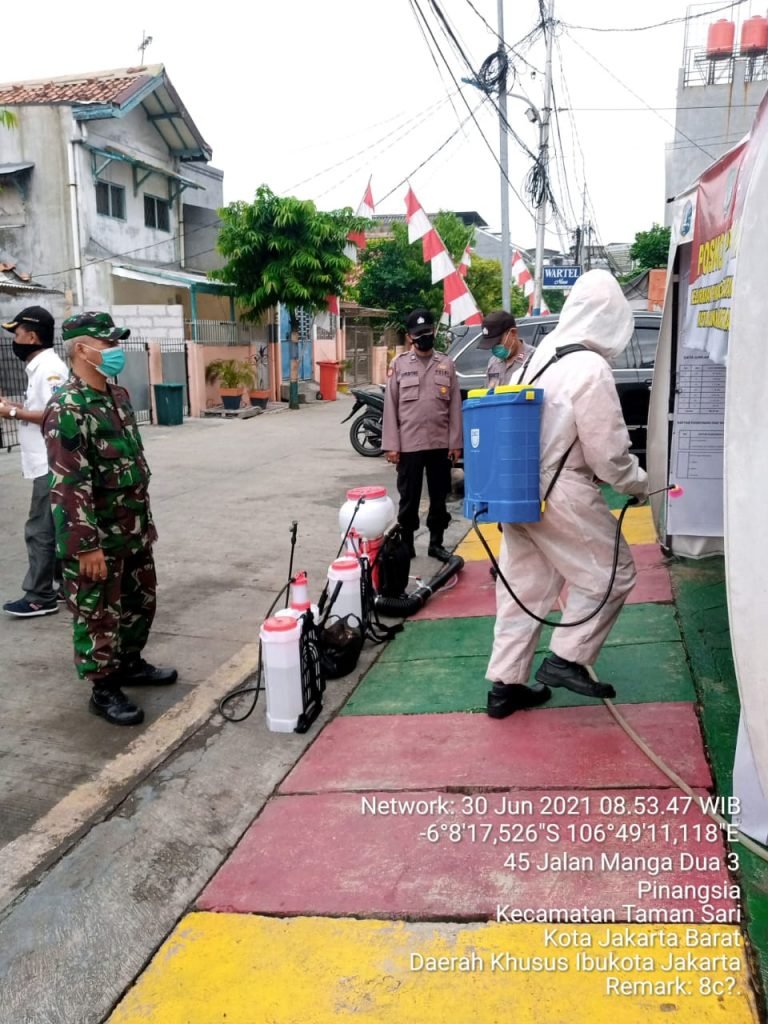 “Kegiatan penyemprotan dan himbauan protokol kesehatan ini dengan tujuan untuk memutus mata rantai penularan Wabah Virus Covid-19 yang kami dilakukan bersama tiga pilar Kelurahan Pinangsia Kecamatan Tamansari Jakarta Barat, “Ucap Serma Wakdinator.