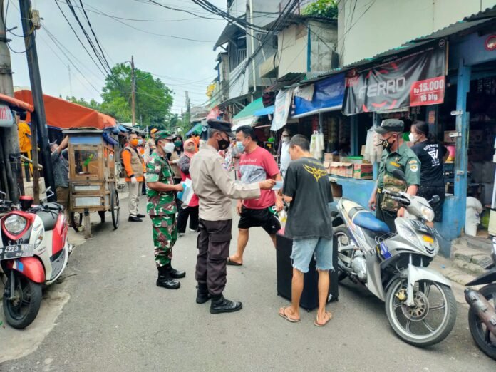ACTUALNEWS.ID, Jakarta Barat – Kodim 0503/JB, Koramil 01/Tamansari. Dua personil Koramil 01/Tamansari yang di pimpin Sertu Suharno kembali hari ini bersama Bhabinkamtibmas Aiptu Yatno, Sekel Tangki, Heri Nurdin, Satpol PP Kel. Tangki, Kasi Pem Hermawan, Kasi Eksbang Ibu Umi, Personil BNPB, Personil BPBD, LMK Kel.Tangki, Mitra Jaya, Citra Bhayangkara, FKDM, Karang Taruna dan PPSU melaksanakan himbauan Protokol Kesehatan (Prokes) sekaligus pembagian masker.