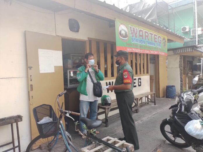 ACTUALNEWS.ID, Kodam Jaya, Jakarta Barat – Babinsa Koramil 01/Tamansari Kodim 0503/Jakarta Barat, Serda Abdi Amrizal bagikan masker kepada warga binaan di Jalan Mangga Raya Rt. 003/ 001, Kel. Tamansari, Kec.Tamansari, Jakarta Barat. Kamis (18/8).