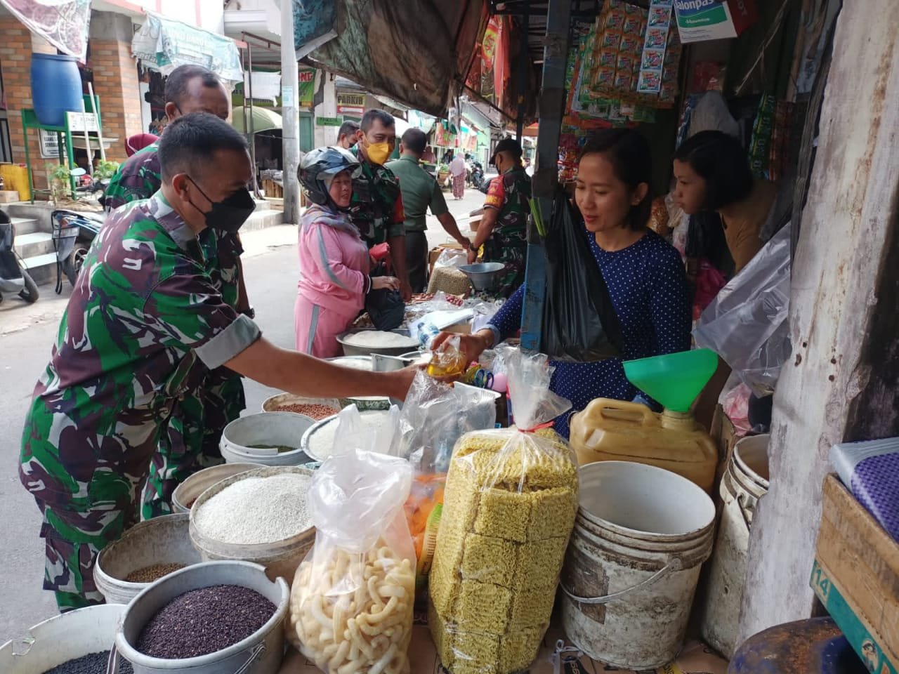 ACTUALNEWS.ID, Sukoharjo (10/06/22) Sebagai upaya untuk memastikan harga eceran tertinggi (HET) minyak goreng, khususnya minyak goreng curah agar tetap stabil, Bati Tuud Koramil 08 Baki Peltu Sukradi dan Babinsa Serda Joko Gunawan, melaksanakan pengecekan harga minyak goreng curah yang ada di Pasar Baki, Jumat (10/06/2022).