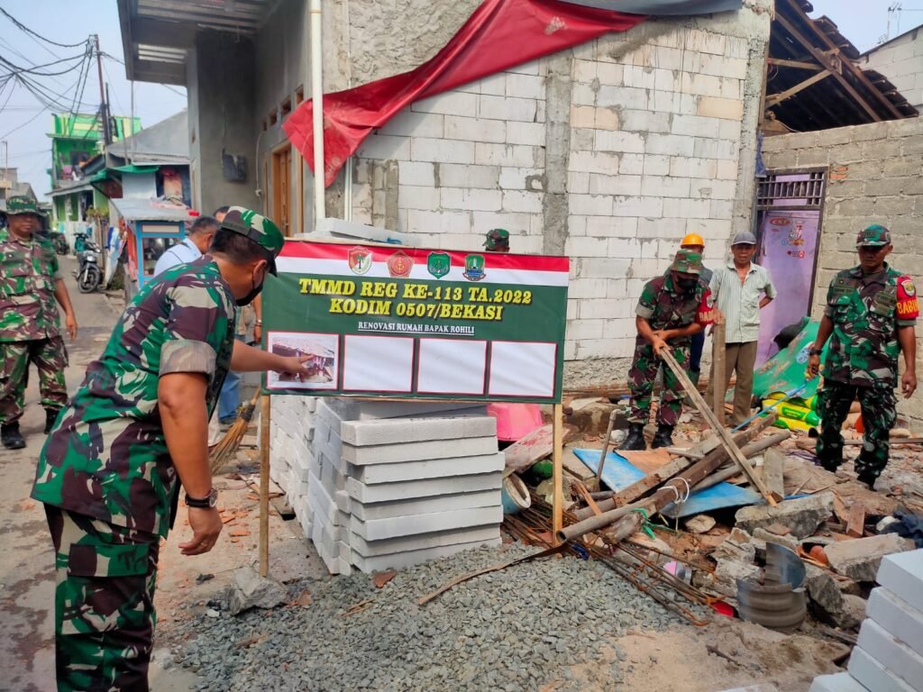 ACTUALNEWS.ID, Kodam Jaya, Kota Bekasi – Pantau proses awal pembangunan rutilahu, Danrem 051/WKT Brigjen TNI Yustinus Nono,SE.,M.Si., Didampingi Dandim 0507/Bekasi Letkol Kav Luluk Setyanto,M.P.M., Kunjungi Lokasi TMMD 113 yang berada di Rt.01/01, Kel.Teluk Pucung, Kec.Bekasi Utara, Kota Bekasi, Selasa (10/8/2022).