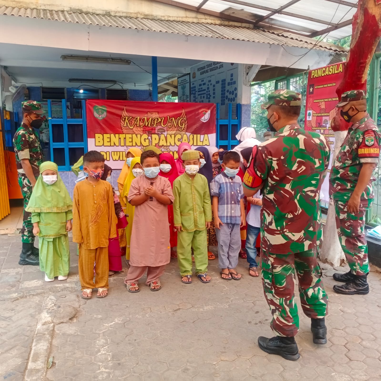 ACTUALNEWS.ID, Kodam Jaya, Jakarta Barat – Agar anak dapat memiliki akhlak mulia memiliki moral yang sesuai dengan harapan bangsa. Anggota Koramil 01/Tamansari Kodim 0503/JB, yang di pimpin Serka Rudiyanto memberikan pemahaman nilai-nilai Pancasila di Kampung Pancasila Jalan KP Jawa Malang, Rt. 005/007, Kel. Keagungan, Kec. Tamansari, Jakarta Barat. Jum’at (25/3).