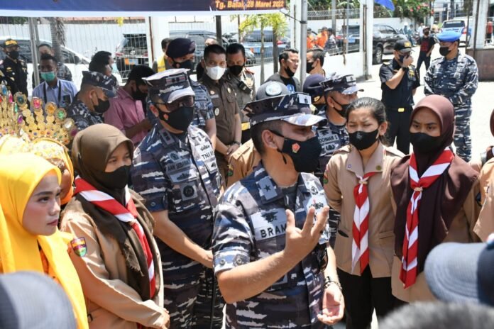 ACTUALNEWS.ID, Tanjung Balai – Aspotmar Koarmada RI Laksma TNI Bram Rusman Namin, CHRMP didampingi Danlanal TBA Letkol Laut (P) Aan Prana Tuah Sebayang, S.E., D.W.C., memberikan motivasi kepada para Pramuka Saka Bahari binaan Lanal Tanjung Balai Asahan, Senin (28/3/2022).