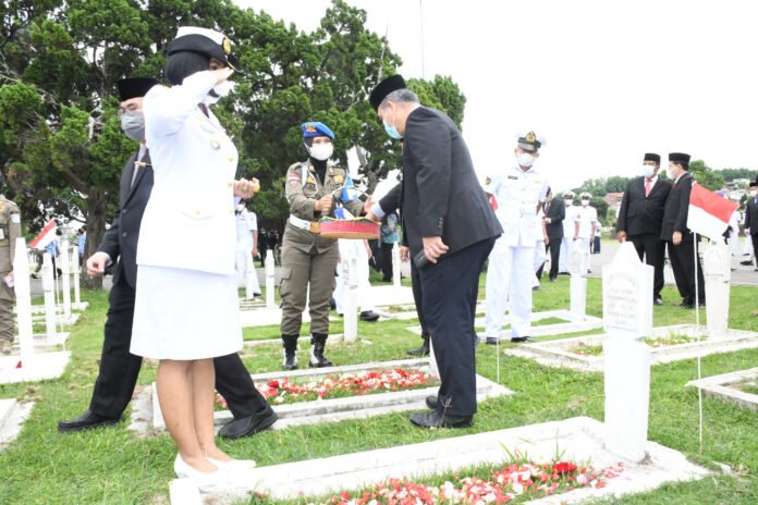 ACTUALNEWS.ID, Bandung – Komandan Pangkalan TNI Agkatan Laut (Danlanal) Bandung Kolonel Laut (KH/W) Dr. Renny Setiowati, S.T., M.Sc., M.Tr.Hanla., bersama Unsur Forkopimda Kota Bandung menghadiri Upacara Ziarah dan Tabur Bunga dalam rangka memperingati Hari Bandung Lautan Api (BLA), selaku Pimpinan Upacara Ziarah dan Tabur Bunga Plt. Walikota Bandung H. Yana Mulyana, S.E., M.M., bertempat di Taman Makam Pahlawan Nasional (TMP) Cikutra Bandung, Rabu (23/03/2022).