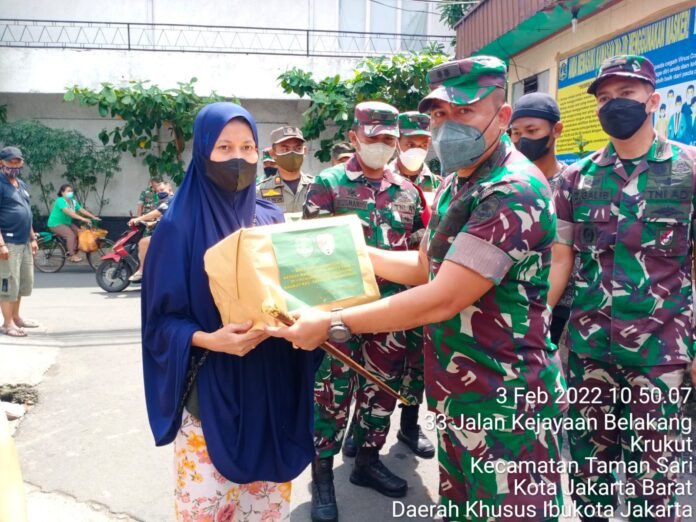 ACTUALNEWS.ID, Jakarta Barat – Bentuk kepedulian TNI AD kepada warga Isoman Positif Covid-19 dilinkungan Rw. 02, Kelurahan Krukut, Kec. Tamansari – Jakarta Barat dengan memberikan paket sembako.
