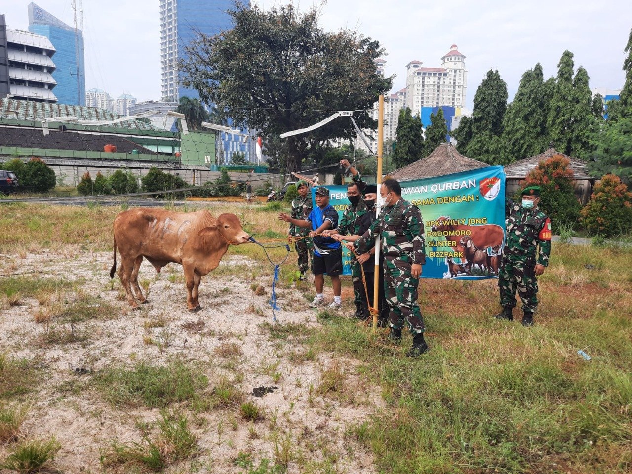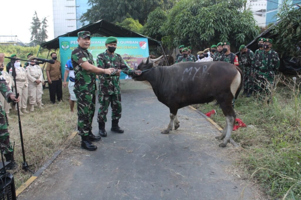 ACTUALNEWS.ID, Kodam Jaya Jakarta -Dandim 0503/JB Kolonel Kav I.Made Maha Yudhiksa. S. sos.MM didampingi Kasdim Letkol Dwi Tantomo menyerahkan hewan qurban ke Ponpes yatim piatu darul rosyid yang berada di JL. lingkungan 3 rt 10 rw 09 kelurahan Tegal Alur Kalideres Jakarta Barat.