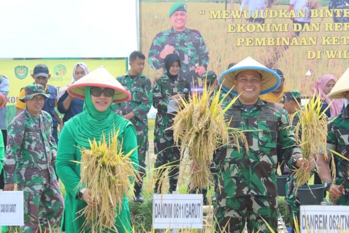Dandim 0611/Garut, mengatakan “bahwa panen raya ini merupakan wujud nyata sinergitas TNI bersama Pemerintah Kabupaten Garut, melalui Dinas Pertanian dalam membantu masyarakat.”