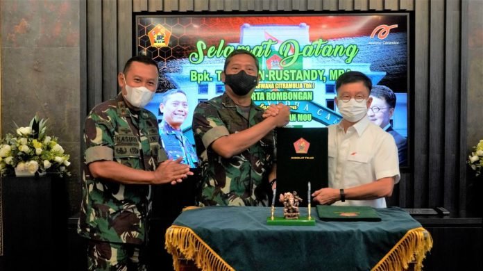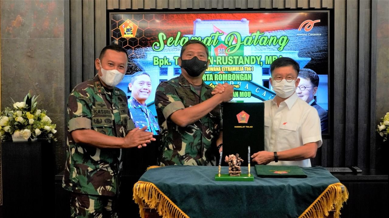ACTUALNEWS.ID, Bandung – Tingginya intensitas kegiatan Kodiklatad yang bersentuhan langsung dengan masyarakat terutama sejak kepemimpinan Letjen TNI AM. Putranto, S.Sos. menarik perhatian beberapa perusahaan swasta untuk melaksanakan kerja sama dalam bentuk hibah. Dankodiklatad menerima kunjungan Dirut PT Arwana Citra Mulia Tbk, Bapak Tandean Rustandy, M.B.A. dalam rangka penandatangangan Memorandum of Understanding / Berita Acara Hibah Keramik di Lounge Room Makodiklatad. Selasa (18/1/2022)