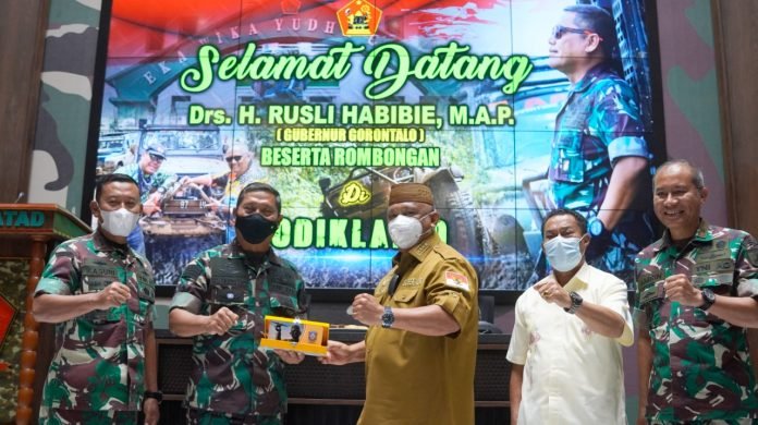 ACTUALNEWS.ID, Bandung – Silaturahmi yang dibangun dengan tulus akan menunjang pelaksanaan tugas pokok secara profesional demi manfaat yang lebih besar. Hal ini tercermin saat Dankodiklatad, Letjen TNI AM. Putranto, S.Sos. menerima kunjungan Gubernur Gorontalo Bapak Drs. H. Rusli Habibie, M.A.P. di Ruang Rapat Ganesha Dankodiklatad. Senin (24/1/2022)