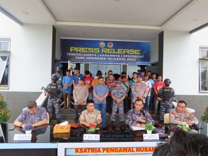 yang membawa Pekerja Migran Indonesia (PMI) ilegal, bertempat di Mako Lanal Batam, Jum’at (17/06/2022).