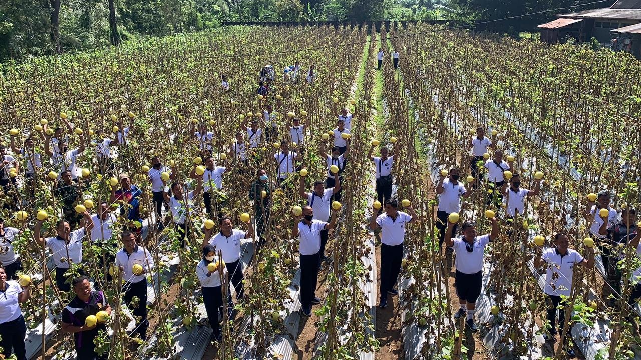 Selesai Melaksanakan Panen buah melon golden dilanjutkan Jam Komandan di lapangan Pos Rancung TNI AL Lanal Lhokseumawe.