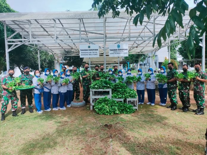 ACTUALNEWS.ID, Babel – Danlanal Babel Kolonel Laut (P) dan Ketua Jalasenastri Cabang 4 Korcab III DJA 1 melaksanakan panen sayur sawi dalam rangka mendukung program pemerintah meningkatkan ketahanan pangan di Mako Lanal Babel Jalan Tanjung Gudang Kecamatan Belinyu Kabupaten Bangka, Kamis (13/01/2022).