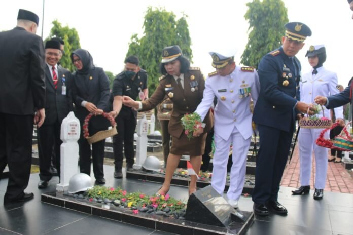 ACTUALNEWS.ID, Palembang,- Komandan Lanal Palembang Kolonel Laut (P) Widyo Sasongko, S.E., M.Tr. Hanla., menghadiri Upacara Ziarah Nasional dalam rangka memperingati Hari Pahlawan Tahun 2022 di TMP Ksatria Ksetra Siguntang Palembang, Kamis (10/11/2022).
