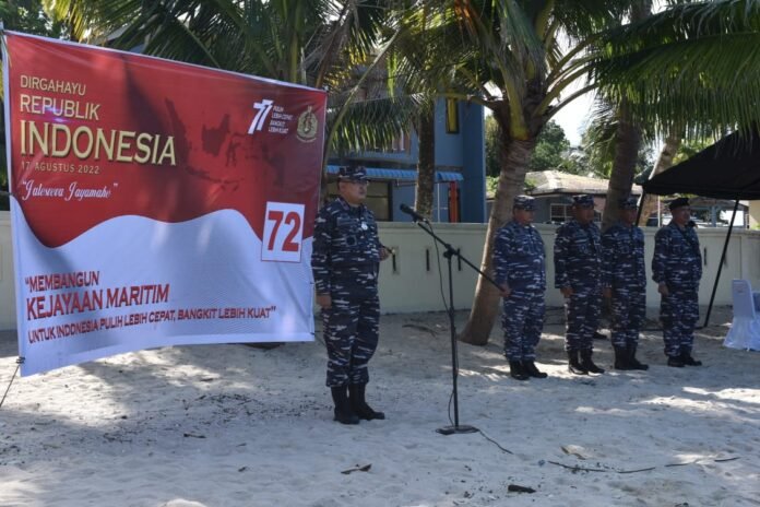 ACTUALNEWS.ID, Belawan,- Komandan Pangkalan TNI Angkatan Laut (Danlantamal I) Laksamana Pertama TNI Johanes Djanarko Wibowo memberikan bendera Kebangsaan Merah Putih kepada Dansatgas Pengibaran Bendera Merah Putih di bawah laut yang akan dilaksanakan secara serentak di 77 titik seluruh Indonesia dalam rangka Peringatan Hari Ulang Tahun Kemerdekaan Republik Indonesia yang ke 77 tahun 2022, bertempat di Pantai Pulau Pandang, Kabupaten Batubara, Sumatera Utara. (15/08/2022).
