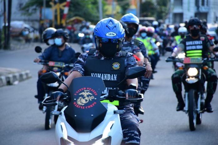ACTUALNEWS.ID, Belawan – Komandan Pangkalan Utama TNI Angkatan Laut (Danlantamal) I Belawan Laksamana Pertama TNI Achmad Wibisono mengikuti Patroli Keamanan Gabungan TNI dan Polri serta Pemerintah Sumatera Utara dengan menggunakan motor guna memastikan malam Misa Natal aman dan kondusif di Kota Medan, Jumat malam (24/12/2021).