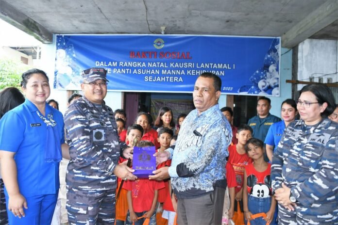 ACTUALNEWS.ID, TNI AL, Lantamal I Belawan,- Dalam rangka Perayaan Natal 2022 dan Tahun Baru 2023, Komandan Lantamal I Laksamana Pertama TNI Johanes Djanarko Wibowo didampingi Ketua Korcab I DJA I Ny. Widhi Johanes bersama para perwira dan personel yang beragama Nasrani melaksanakan kunjungan kasih ke Panti Asuhan Manna Kehidupan Sejahtera untuk memberikan bantuan tali asih kepada anak-anak yatim piatu di Panti Asuhan Kecamatan Sunggal, Medan, Sumut,