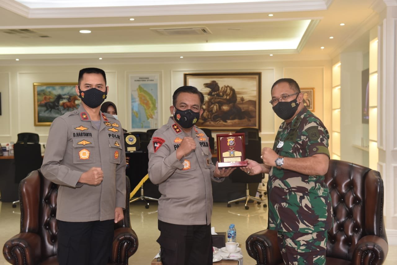ACTUALNEWS.ID, Belawan – Guna mempererat jalinan silaturahmi serta menebalkan sinergitas yang sudah terbangun, Komandan Pangkalan Utama TNI Angkatan Laut I (Danlantamal) Kolonel Laut (P) Johanes Djanarko Wibowo melakukan kunjungan resmi ke Markas Kepolisian Daerah Sumatera Utara, di Jalan Sisingamangaraja, Kota Medan yang disambut dan diterima Kapolda Sumatera Utara Irjen Pol Panca Putra Simanjuntak dan Wakapolda Sumatera Utara Brigjen Pol Dadang Hartanto, Selasa (15/02/2022).