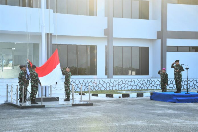 ACTUALNEWS.ID, TNI AL, Belawan,- Komandan Pangkalan Utama TNI Angkatan Laut (Danlantamal) I Belawan Laksamana Pertama TNI Johanes Djanarko Wibowo bertindak sebagai Inspektur Upacara pada Upacara Penaikan Bendera Merah Putih di Markas Komando (Mako) Lantamal I, Jalan Serma Hanafiah No. 01, Belawan, Medan, Sumatera Utara, Senin (02/01/2023).