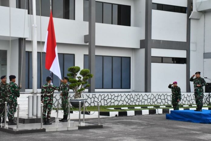 ACTUALNEWS.ID, TNI AL, Belawan,- Komandan Pangkalan Utama TNI Angkatan Laut I (Danlantamal I) Belawan Laksamana Pertama TNI Johanes Djanarko Wibowo memimpin pelaksanaan Upacara Penaikan Bendera Merah Putih, bertempat di Lapangan Apel Mako Lantamal I, Jalan Serma Hanafiah No. 01, Belawan, Medan, Sumatera Utara, Senin (06/03/2023).