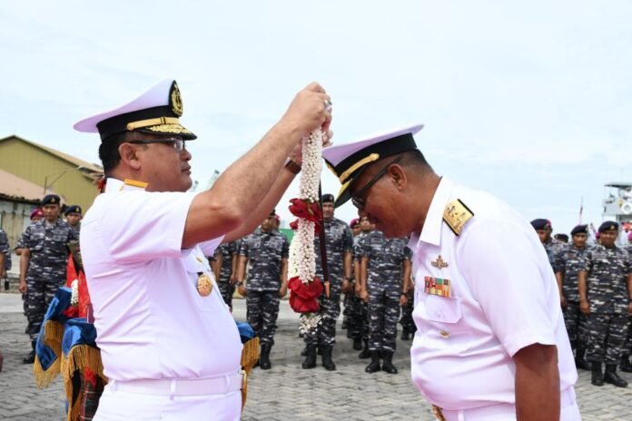 ACTUALNEWS.ID, TNI AL, Lantamal I,- Komandan Lantamal (Danlantamal) I Belawan Laksamana Pertama TNI Johanes Djanarko Wibowo menyambut kedatangan 3 (tiga) Kapal Perang Malaysia KD Teguh Samudera, KD Gempita, dan KD Kinabalu di Dermaga Pelindo 103, Jalan Ujung Baru, Belawan, Kamis (17/11/2022).