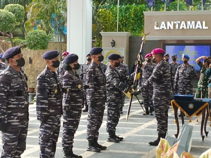 ACTUALNEWS.ID, Babel – Komandan Pangkalan Utama Angkatan Laut (Danlantamal) III Brigjen TNI (Mar) Umar Farouq, S.A.P., M.Tr.Opsla., CHRMP., memimpin secara langsung Upacara Serah Terima Jabatan Komandan Lanal Bangka Belitung dari Kolonel Laut (P) Fajar Hernawan kepada Letkol Laut (P) Dadan Hamdani, M.Tr. Hanla., CTMP., CRMP., CIQaR., di Selatsar Mako Lantamal III Jakarta, Jalan Gunung Sahari No.2, Kecamatan Pademangan, Jakarta Utara, Kamis (10/3/2022).