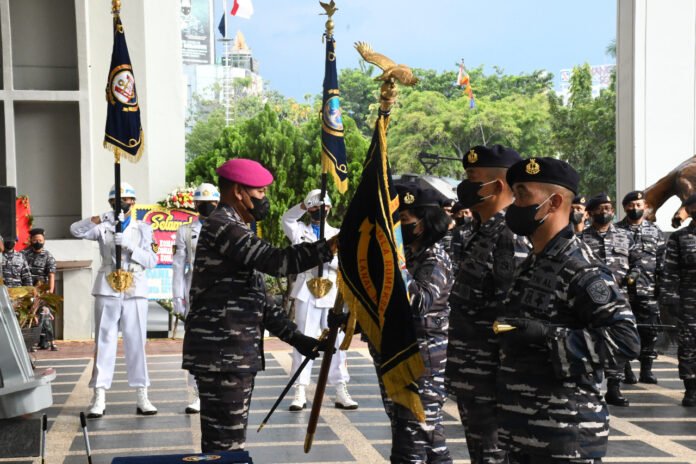 ACTUALNEWS.ID, Palembang – Komandan Pangkalan Utama Angkatan Laut (Danlantamal) III Brigjen TNI (Mar) Umar Farouq, S.A.P., M.Tr.Opsla., CHRMP memimpin secara langsung upacara Serah Terima Jabatan Komandan Lanal Palembang dari Kolonel Laut (P) Filda Malari,CTMP.,S.E kepada Kolonel Laut (P) Widyo Sasongko, S.E.,M.Tr.Hanla di Selasar Mako Lantamal III Jakarta, Jl. Gunung Sahari No.2, Kec. Pademangan Jakarta Utara. (Kamis, 10 Maret 2022).