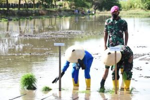 ACTUALNEWS.ID, Merauke – 16 Desember2021,– Komandan Korps Marinir (Dankormar) Mayor Jenderal TNI (Mar) Suhartono, M.Tr. (Han) didampingi Danlantamal XI Merauke Brigjen TNI (Mar) Edi Prakoso, S.E., turun ke sawah untuk menanam benih padi dalam rangka program ketahanan pangan salah satu program yang dicanangkan oleh Pemerintah Presiden Joko Widodo.