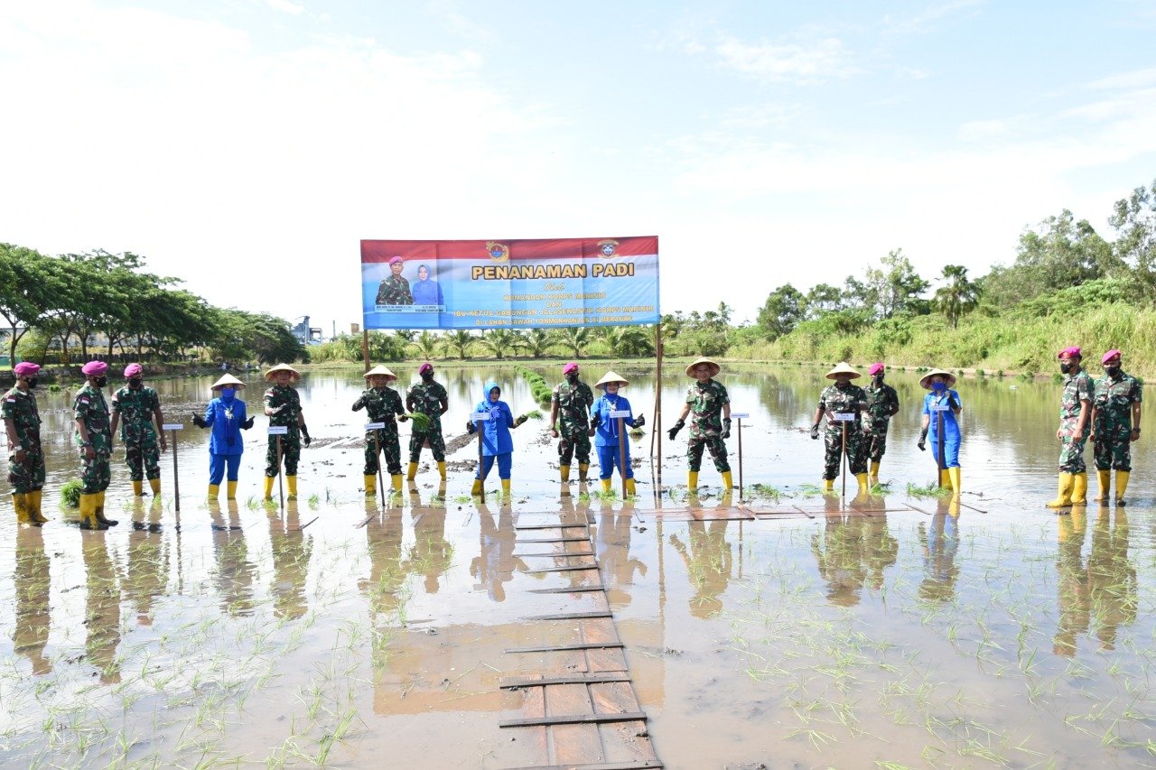 ACTUALNEWS.ID, Merauke – 16 Desember2021,– Komandan Korps Marinir (Dankormar) Mayor Jenderal TNI (Mar) Suhartono, M.Tr. (Han) didampingi Danlantamal XI Merauke Brigjen TNI (Mar) Edi Prakoso, S.E., turun ke sawah untuk menanam benih padi dalam rangka program ketahanan pangan salah satu program yang dicanangkan oleh Pemerintah Presiden Joko Widodo.