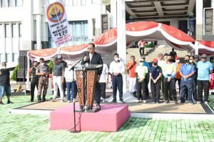 ACTUALNEWS.ID, Merauke, 22 Januari 2022,– Jalan santai dan senam massal menjadi pembuka seluruh rangkaian kegiatan dalam rangka HUT Kota Merauke ke-120 tahun 2022. Kemudian dilanjutkan dengan senam bersama, pencanangan HUT Kota Merauke oleh Wakil Bupati Merauke H. Riduwan didampingi Danlantamal XI Merauke Brigjen TNI (Mar) Edy Prakoso, S.E., serta unsur Forkompimda lainnya ditandai dengan pelepasan balon. Selanjutnya Wakil Bupati Merauke H. Riduwan mengikuti jalan santai sambil menyapa masyarakat didampingi Danlantamal XI Merauke Brigjen TNI (Mar) Edy Prakoso, S.E. serta unsur forkompimda lainya. Diperkirakan tidak kurang dari 300 orang ikut memeriahkan kegiatan tersebut termasuk perwakilan anggota Lantamal XI Merauke.