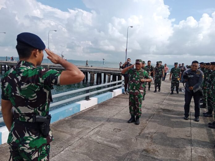 ACTUALNEWS.ID, Batam,- Komandan Posal Pulau Nipa Letda Laut (K) Ringga Aldafio, S.Farm., Apt., sambut kedatangan Danrem 033/WP Brigjen TNI Yudi Yulistyanto, M.A., Msc., beserta rombongan dalam rangka peninjauan kondisi dan situasi Personil Satgas Pengamanan Pulau Terluar (Pamputer) Pulau Nipa, Kamis (25/08/2022).