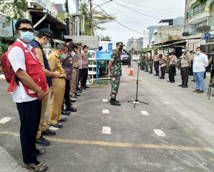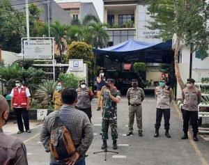 ACTUALNEWS.ID, Jakarta Barat – Komandan Rayon Militer (Danramil) 01/Tamansari, Kodim 0503/Jakarta Barat, Mayor Inf Zulkanaen Galib bersama tiga pilar gelar apel gabungan dalam rangka pengarahan giat Swab dan penyemprotan Cairan Desinfektan serta pelaksanaan Swab Antigen dan PCR.