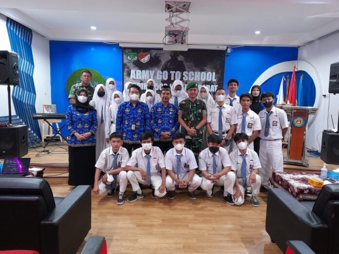 ACTUALNEWS.ID, Kodam Jaya, Jakarta Barat – Komandan Rayon Militer (Danramil) 01/Tamansari Kodim 0503/Jakarta Barat, Kapten Inf Mulia Adi Dharma Giat Army Go To Schol, Bertempat di Aula SMAN 17 Jakarta Jalan Mangga Besar 4 i Rt 03/01 Kel. Tamansari, Kec. Tamansari, Jakarta Barat. Senin, 19 September 2022.