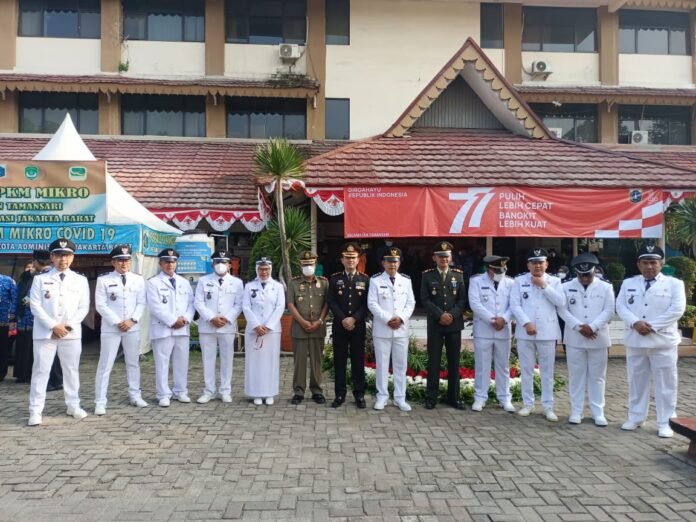ACTUALNEWS.ID, Kodam Jaya, Jakarta Barat – Komandan Rayon Militer (Danramil) 01/Tamansari Kodim 0503/JB, Kapten Inf Mulia Adi Dharma hadiri Upacara Pengibaran Bendera Sang Merah Putih di Halaman Kantor Kecamatan Tamansari Jalan Kemukus No. 2, Kel. Pinangsia, Kec. Tamansari Jakarta Barat. Rabu (17/8).
