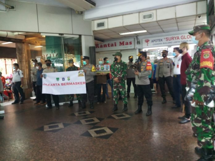 “Sasaran operasi kali ini menyasar pedagang dan pengunjung pasar yang tidak menggunakan masker di Gedung Glodok Candra Petak 6 sebagai upaya kami dalam memutus mata rantai penyebaran virus covid-19”. Kata Danramil pada Rabu (9/6)