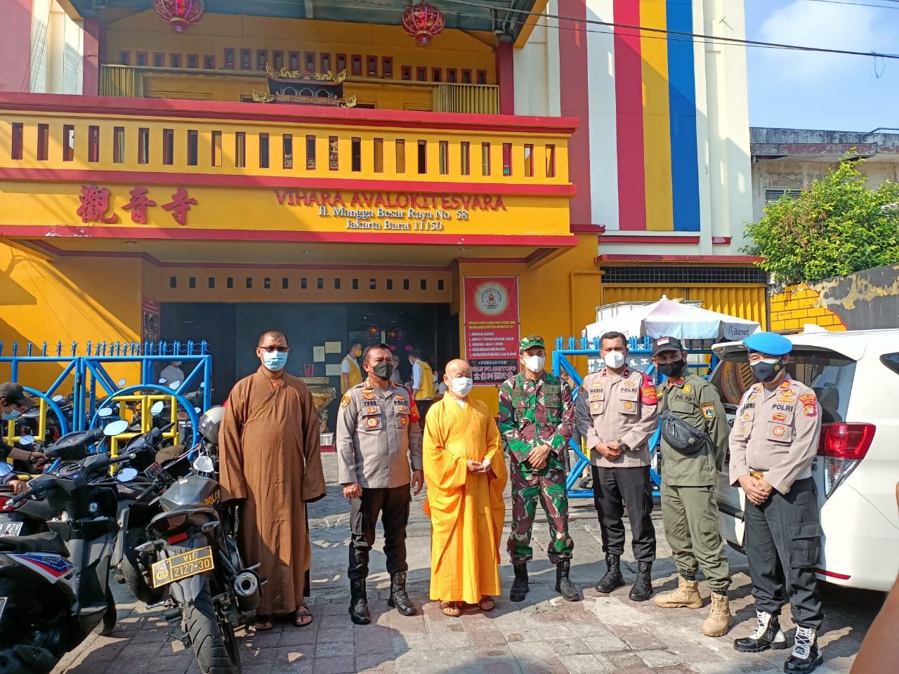 Kehadiran Danramil 01/TS Mayor Inf Zulkarnaen Galib dalam rangka Pemantauan dan Pengamanan Giat sembahyang Tri Suci Waisak Tahun 2565 Be / Tahun 2021 bersama Kapolsek Tamansari AKBP Iverson Manosoh S.H.