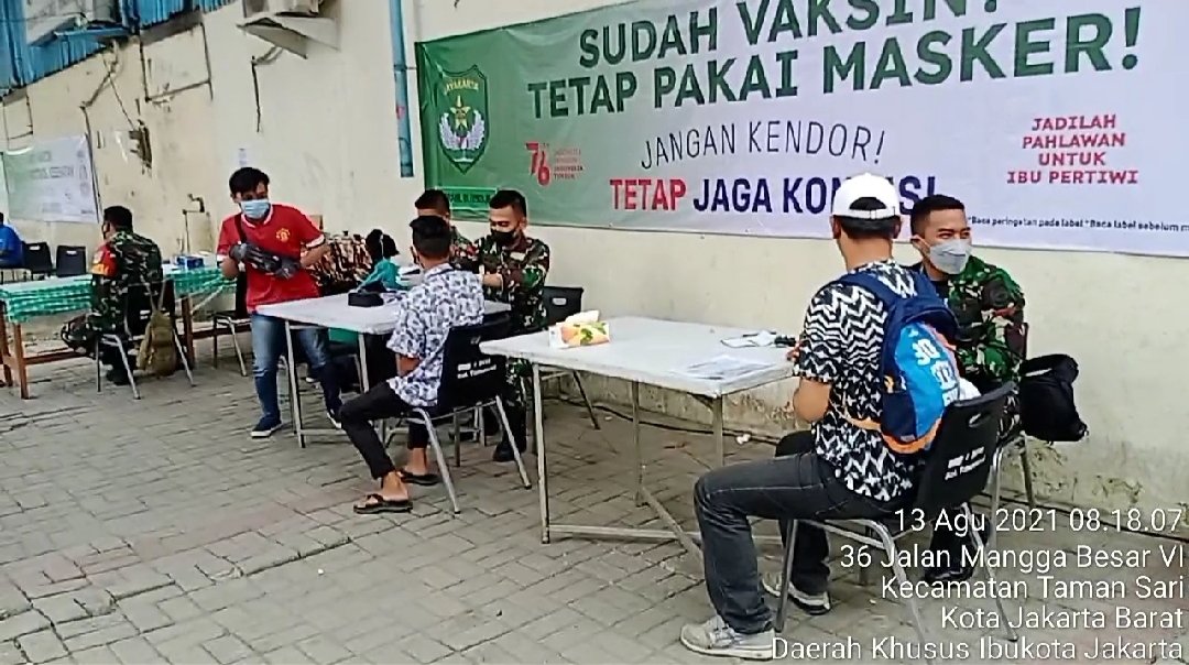 ACTUALNEWS.ID, Jakarta Barat – Koramil 01/Tamansari Kodim 0503/Jakarta Barat terus gencarkan serbuan Vaksinasi dosis kedua Sinovak yang langsung di pimpin Danramil Mayor Inf Zulkarnaen Galib.
