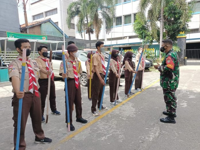 ACTUALNEWS.ID, Jakarta – Komandan Rayon Militer (Danramil) 02/Tambora Kapten Inf Arja Suarja memberikan materi pelatihan pramuka Saka Wira Kartika kepada para siswa untuk menumbuhkan disiplin dan pengenalan wawasan kepramukaan.