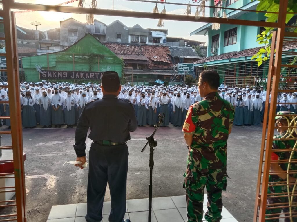 ACTUALNEWS.ID, Kodam Jaya Jakarta -Danramil 02/TB Kodim 0503/JB Kapten Inf Arja Suarja berikan materi wawasan kebangsaan yang di ikuti oleh 200 siswa di SMKN 9 Jl. Gedong Panjang 2 No 17 RT 01 RW 10 Kel. Pekojan Kec. Tambora Jakarta Barat.Senin (15/8)