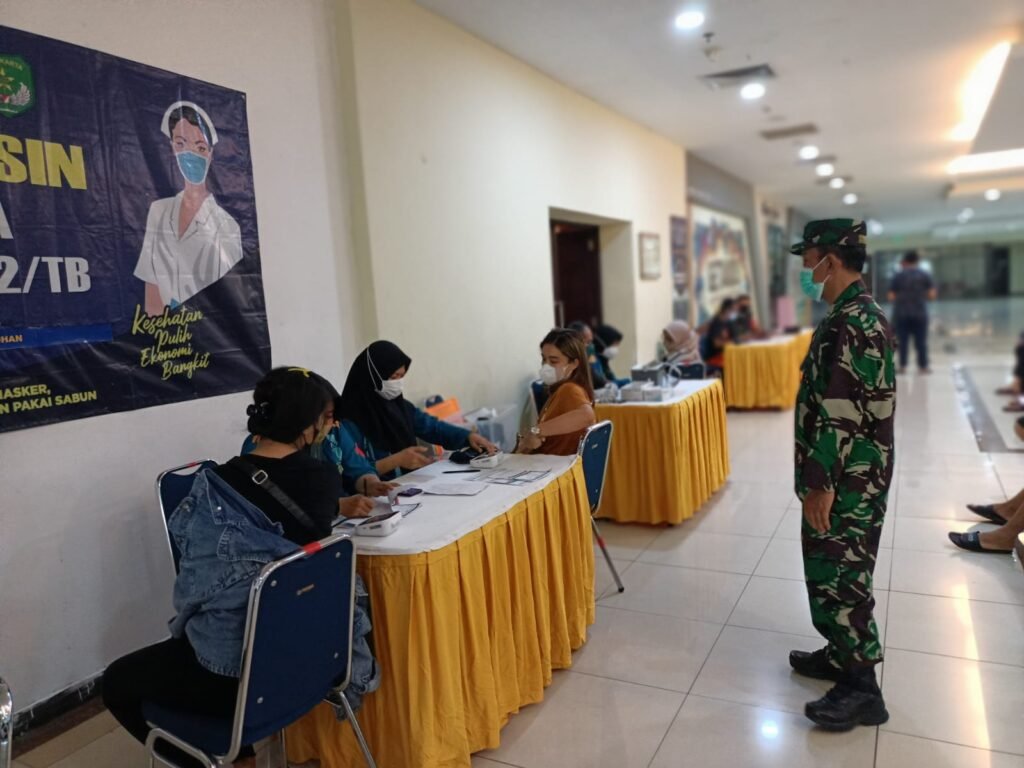 Kegiatan vaksinasi terus dipantau Danramil 02/TB Kapten Inf Arja Suarja selaku penanggung jawab turut hadir dalam kegiatan Sekkel Jembatan Besi Ibu Sulis,Pengelola Mall Seaseon City Widodo.