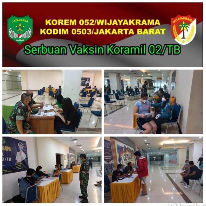 ACTUALNEW.ID, Jakarta -Serbuan Vaksinasi TNI Kodim 0503/JB yang digelar Koramil 02/TB terus berlanjut di Mall Seaseon City Lantai 1 Jl.Latumenten Rt 01 Rw 05 Kel Jembatan Besi, Kec Tambora, Jakarta Barat oleh Team Nakes Polkes Kodim 0503/JB 5 Personil yang dipimpin dr M Arief.Senin (26/4)