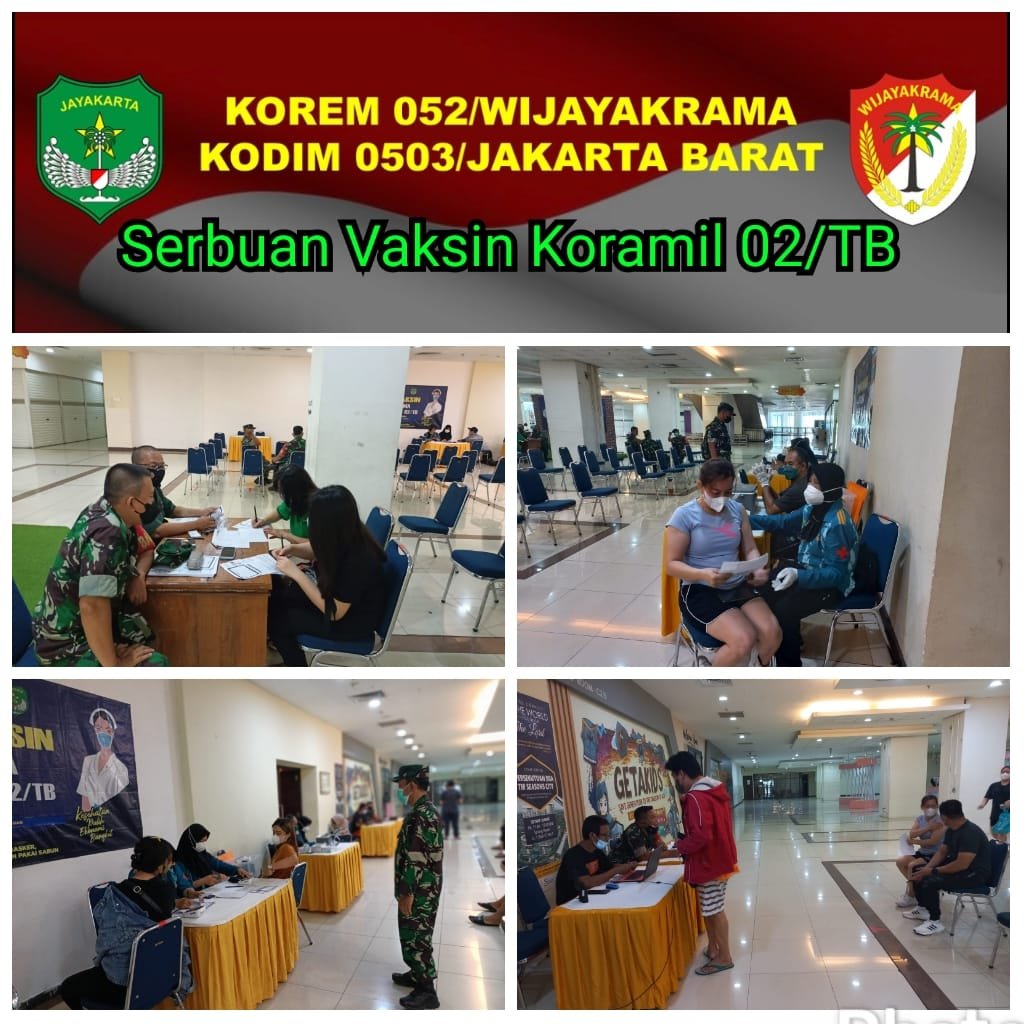 Kegiatan vaksinasi terus dipantau Danramil 02/TB Kapten Inf Arja Suarja selaku penanggung jawab turut hadir dalam kegiatan Sekkel Jembatan Besi Ibu Sulis,Pengelola Mall Seaseon City Widodo.