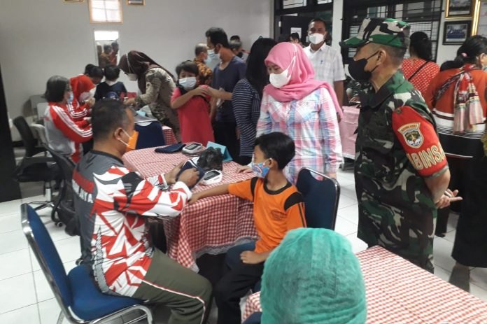 Danramil 02/TB Kapten Inf Arja Suarja menjelaskan, Kegiatan vaksinasi ini kami gelar untuk anak usia 6-11 tahun dan akan terus berlanjut,