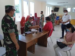 Pelaksana kegiatan vaksinasi dari Tim nakes Polkes Kodim 0503/JB 4 Personil dipimpin Letda Arh Umar Ode dan BKO Yonkav 9/SDK 5 Personil dipimpin Serda I Kadek Budi, Tutup Danramil Kapten Arja