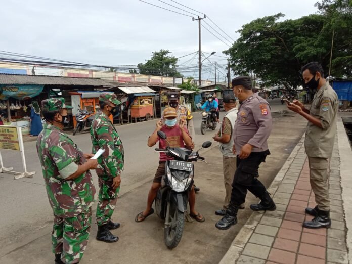 ACTUALNEWS.ID, Kodam Jaya, Tigaraksa – Dengan kekuatan 10 personel gabungan dari Koramil 12/Rjg 4 orang dipimpin Peltu Watam, Polsek Rajeg 3 orang dipimpin Bripka Wirman dan Satpol PP Rajeg 3 orang dipimpin Tajus kembali melaksanakan Operasi Yustisi PPKM Level 3 Wilayah Kec Rajeg Kab Tangerang.