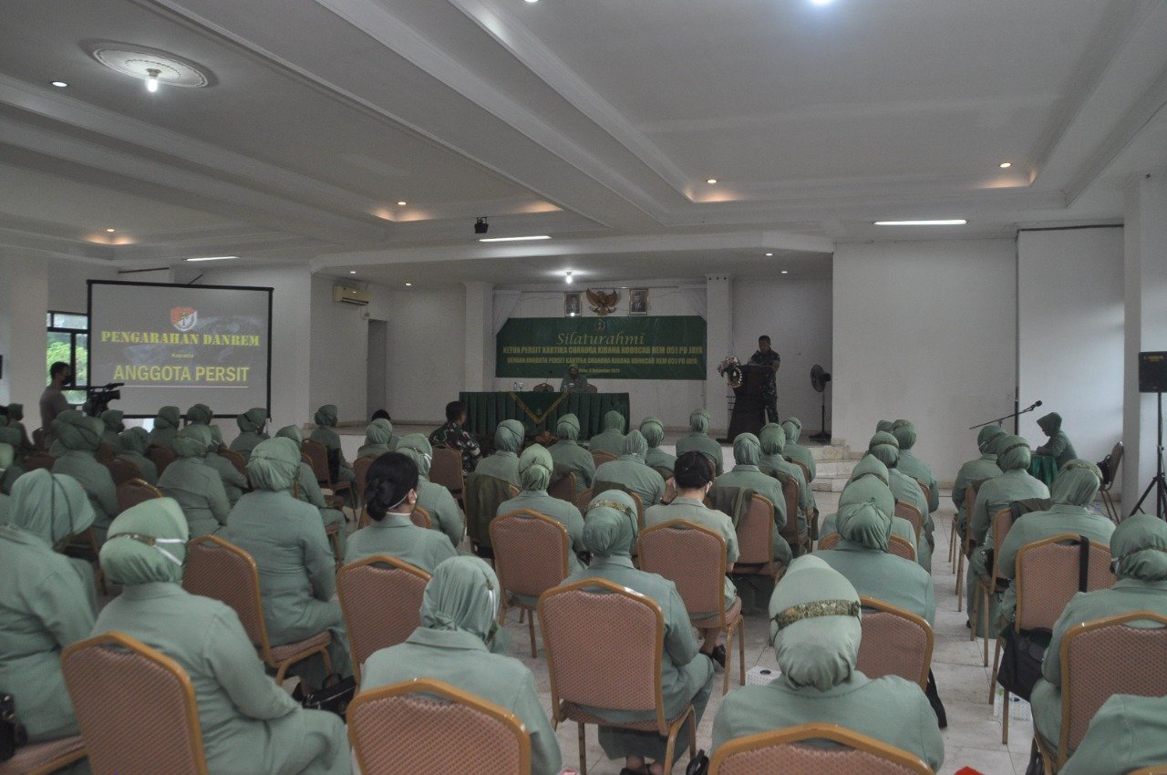 ACTUALNEWS.ID, Bekasi – Komandan Korem 051/Wkt Brigjen TNI R. Sidharta Wisnu Graha, S.E., didampingi Ketua Persit KCK Koorcab Rem 051 PD Jaya Ny. Pipit Sidharta Wisnu memberikan pengarahan kepada anggota Persit KCK Koorcab Rem 051 Pd Jaya, bertempat di Aula Lt. 2 Wijayakarta Makorem 051/Wkt, Jl.Niagaraya Kav1 Cikarang Baru Jababeka Bekasi, Rabu (08/12/2021).