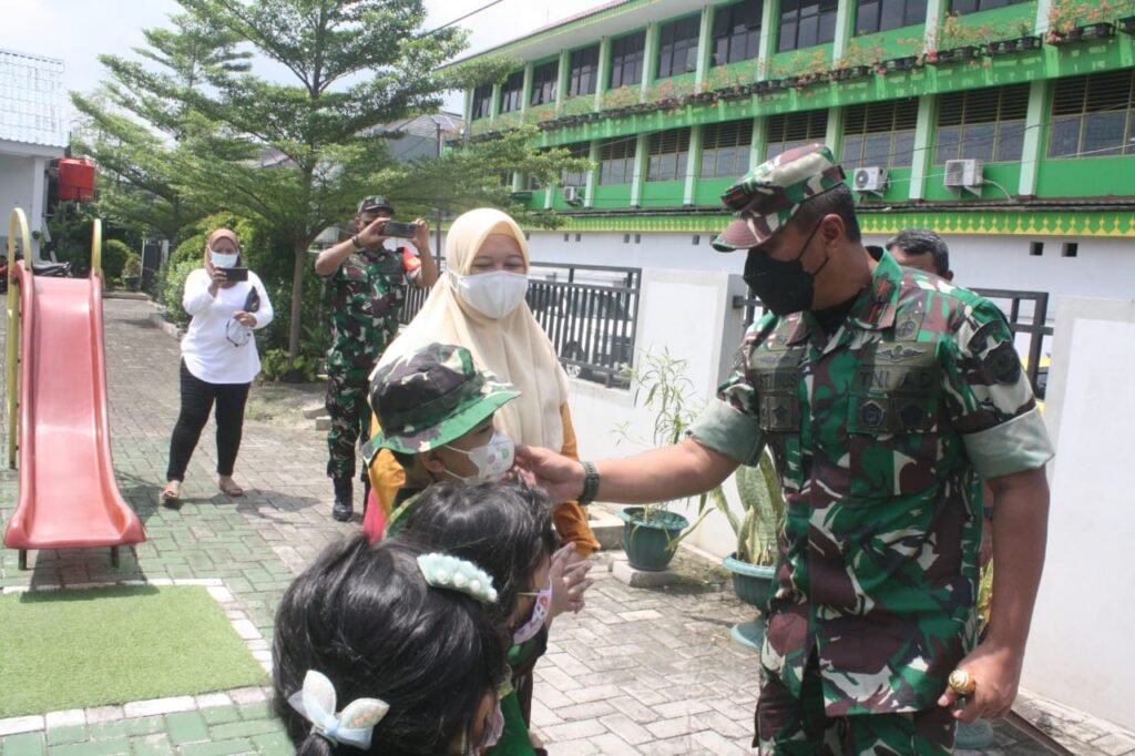ACTUALNEWS.ID, Jakarta – Danrem 051/Wkt Brigjen TNI Yustinus Nono Yulianto, S.E., M.Si., didampingi Ketua Yayasan Kartika Jaya Cabang XVIII berkunjung ke TK KARTIKA X-16. (3/2/2022)